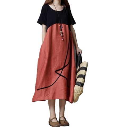 Модное однотонное Хлопковое платье SADI с коротким рукавом и контрастной прострочкой, Длинное Летнее льняное платье макси большого размера, Черное женское повседневное